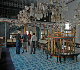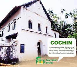 The 17th century Chennamangalam Synagogue, built in the traditional Kerala architectural style, is located in Paravur at a small distance from Vypeen. The majestically carved tabernacle, patterned roof, and intricate woodwork in the Synagogue were recently restored to their original grandeur by the Kerala State Archeology Department. It has a Hebrew inscription dated 1269 AD on a tombstone located in the synagogue courtyard.