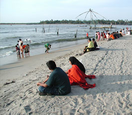 The beautiful golden beach of Cherai in the Island of Vypeen is at a distance of 30Kms from Ernakulam/Cochin. Cherai has a long stretch of clean shallow beach on one side and tranquil backwaters with coconut lagoons on the other. This picture perfect sun kissed beach is ideal for swimming, sunbathing and water sports.